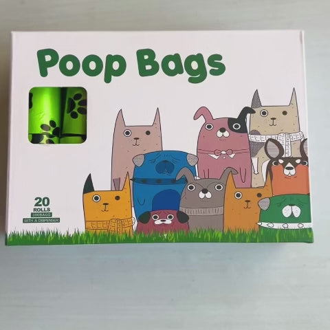 Bolsas biodegradables para popó de perro, ecológicas y resistentes. 300 bolsas (20 rollos x 15 unidades) con dispensador. Ideales para paseos y viajes. ¡Compra ahora y cuida al planeta!