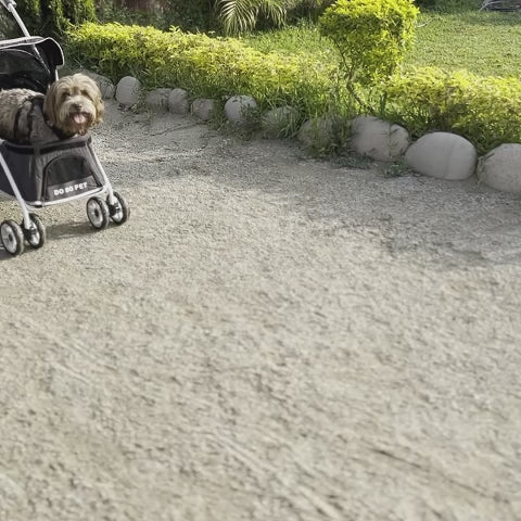 Cochecito para mascotas con malla transpirable, estructura de acero resistente y cinturón de seguridad. Plegable, fácil de transportar y con ruedas universales. Soporta hasta 20 kg. Ideal para paseos.