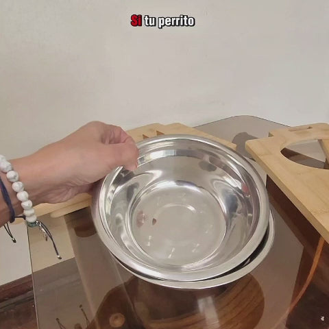 Comedero ajustable en 6 niveles para perros de todas las edades. Base de bambú, cuencos de acero inoxidable y diseño antideslizante. Mejora la postura y reduce la tensión en articulaciones. Fácil montaje.