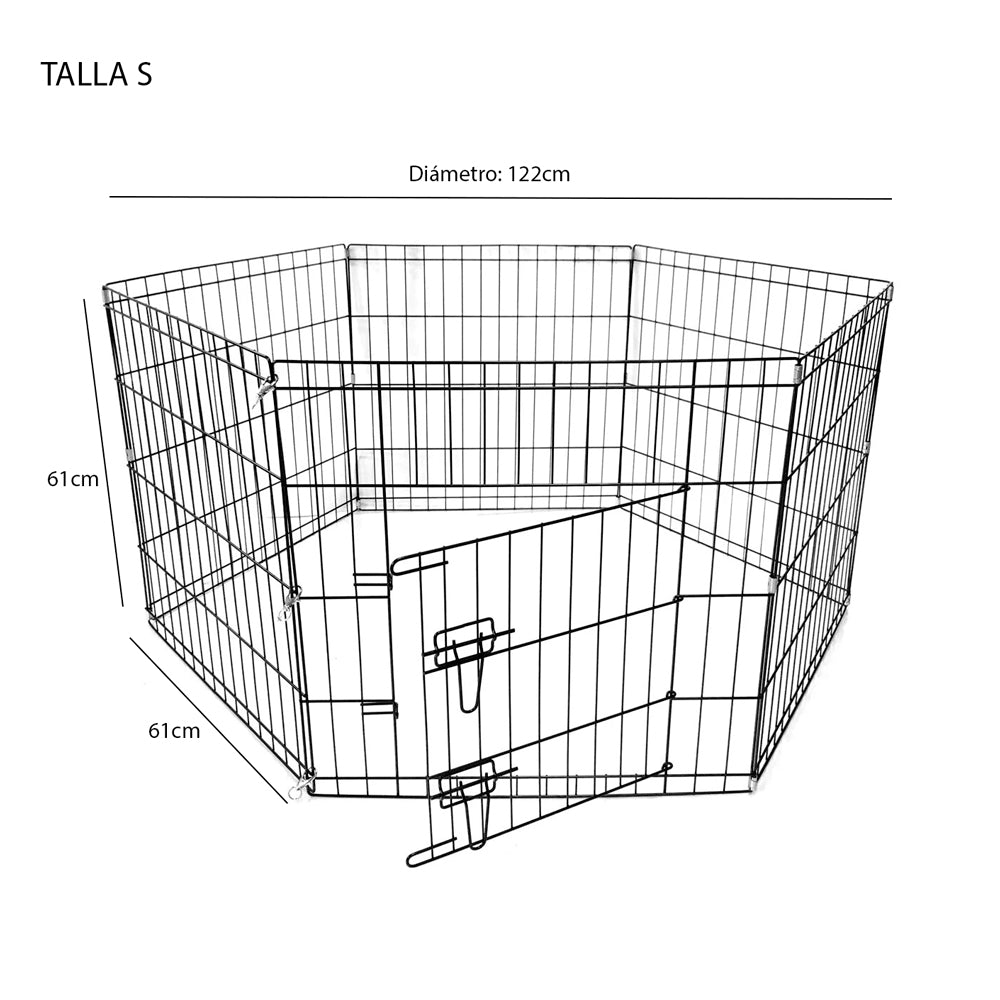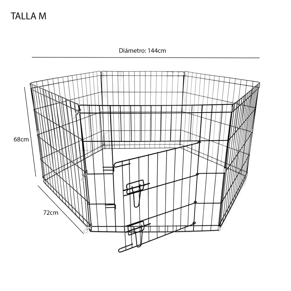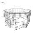 Jaula para mascotas versátil y duradera, con alambre de hierro de 2.3 mm. Se adapta a diversas formas y se pliega para almacenamiento. Fácil montaje, segura y espaciosa. Peso: 6.1 kg.