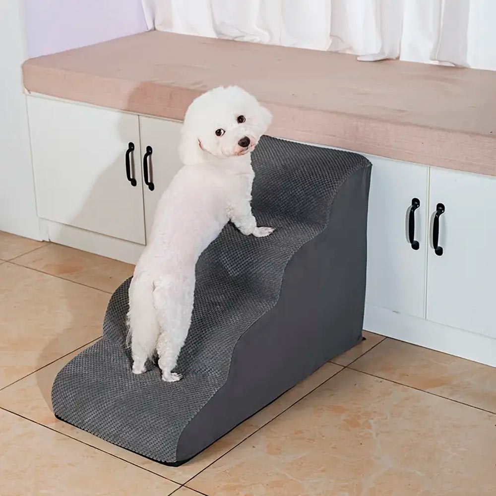 Ayuda a tu mascota a subir a camas o sofás con facilidad. Ligera, plegable y forrada en tela suave para mayor comodidad y seguridad. Ideal para perros y gatos de todas las edades.